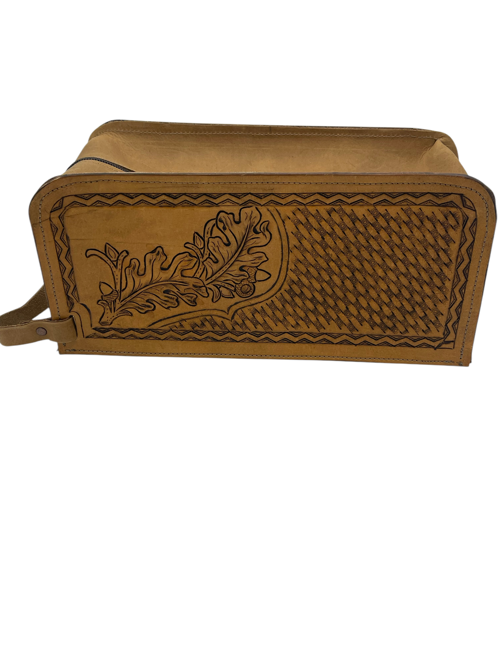 This exquisite genuine leather bag features a beautifully hand-tooled decorative design, making it a perfect addition to your collection. Ideal as a unique shaving kit organizer, its durable craftsmanship ensures longevity while exuding elegance. Elevate your travel experience with this stylish and functional piece that combines artistry with practicality.